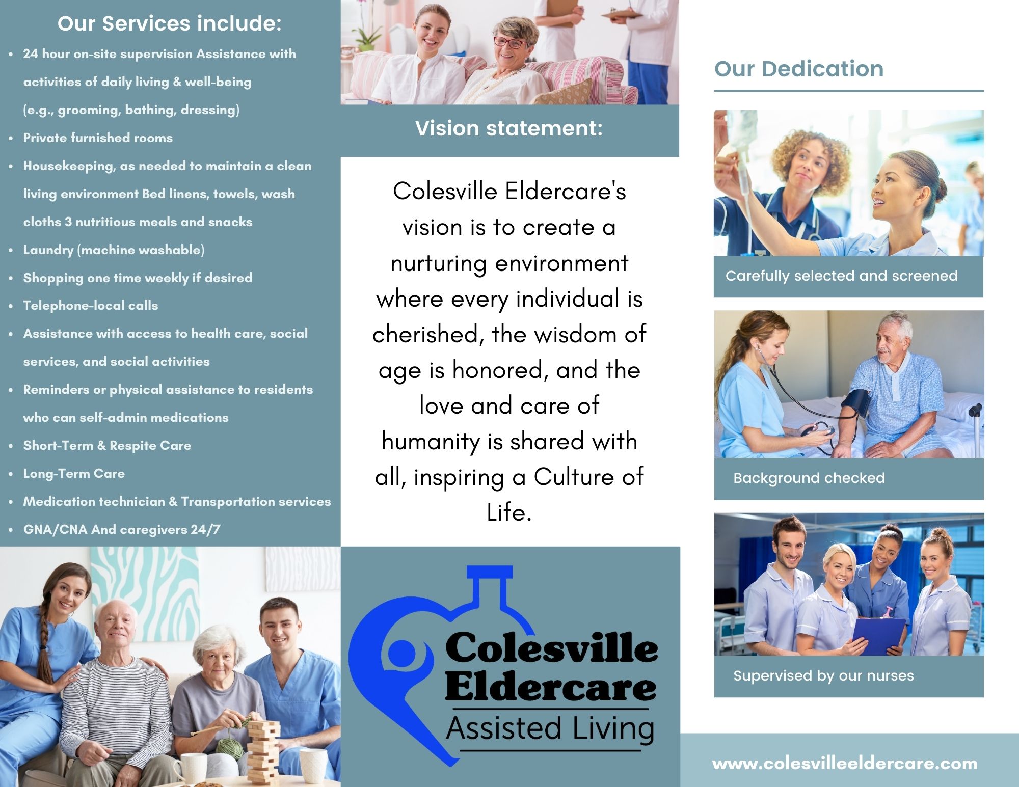 Colesville Eldercare is family-owned and operated providing compassionate care to adults in a home environment where they will be welcomed and cared for as family and accompanied with respect and dignity. Staff live in the home and are available to the Residents twenty-four hours a day, seven days a week. We are passionate about providing high-quality service to our residents with fully furnished and ADA compliance rooms.